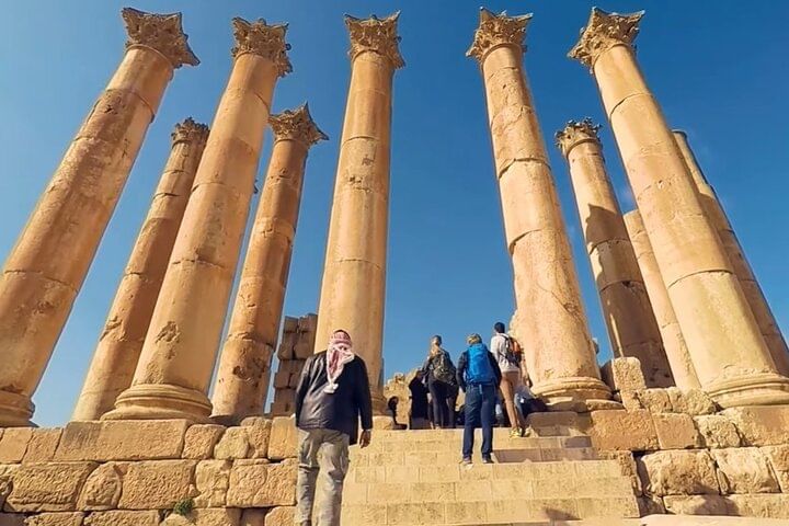 Explore northern Jordan’s historical highlights on this private, full-day Jerash, Ajloun, & Umm Qais tour. Discover the Greco-Roman ruins at Jerash, seeing its Oval Colonnade, temples, and more, and delve into 12th-century Ajloun Castle, built by Saladin’s forces. Finally, explore the remains of Umm Qais, another Greco-Roman city.